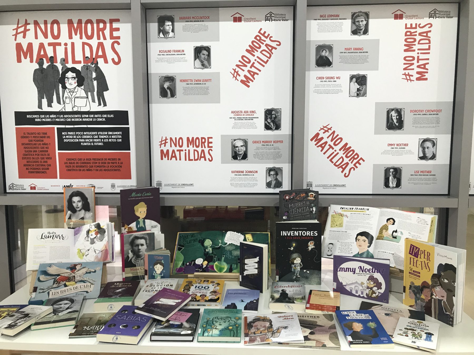 - Visita esta exposición de forma virtual en redes sociales y en la web de la Biblioteca desde el día 11 al 28 de febrero estará expuesta en la Biblioteca Municipal Enric Valor La exposición #NoMoreMatildas, uniéndonos a la celebración del Día Internacional de la Mujer y la Niña en la Ciencia.
