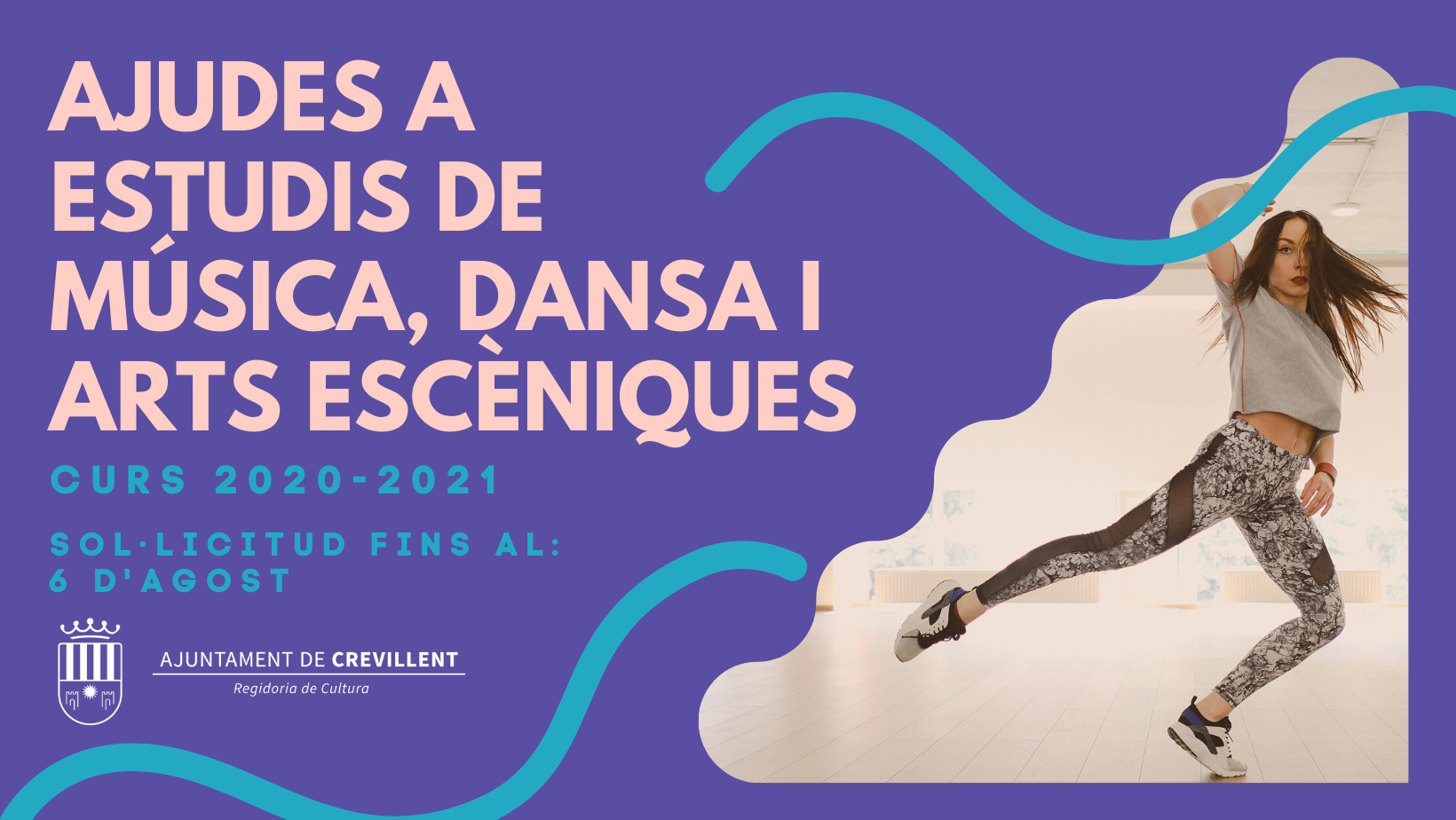 Crevillent (19/07/2021).- La Regidoria de Cultura informa que ja està publicada en el BOP d’Alacant núm. 133 la convocatòria per a les ajudes econòmiques destinades a la formació en música, dansa i arts escèniques, les bases de les quals van ser aprovades pel Ple de la Corporació el passat 28 de juny i es poden consultar ja en l’apartat de Cultura (Beques i subvencions) de la pàgina web de l’Ajuntament.